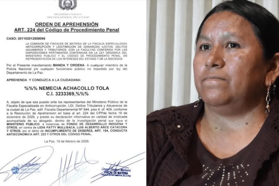 El Ministerio Público emitió una orden de aprehensión en contra de la exministra de Desarrollo Rural y Tierras Nemesia Achacollo…