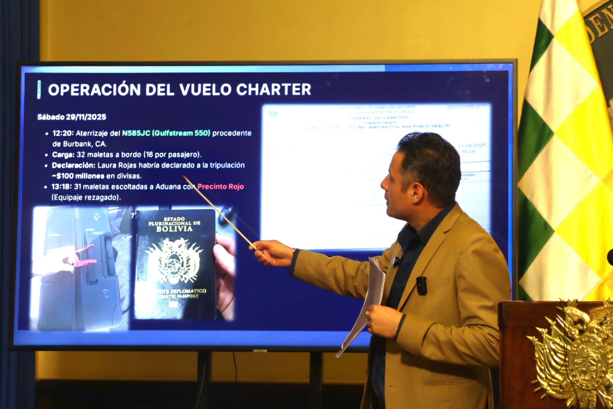 El vicepresidente Edmand Lara informó que la policía de Brasil alertó sobre la llegada de 32 maletas al aeropuerto de…