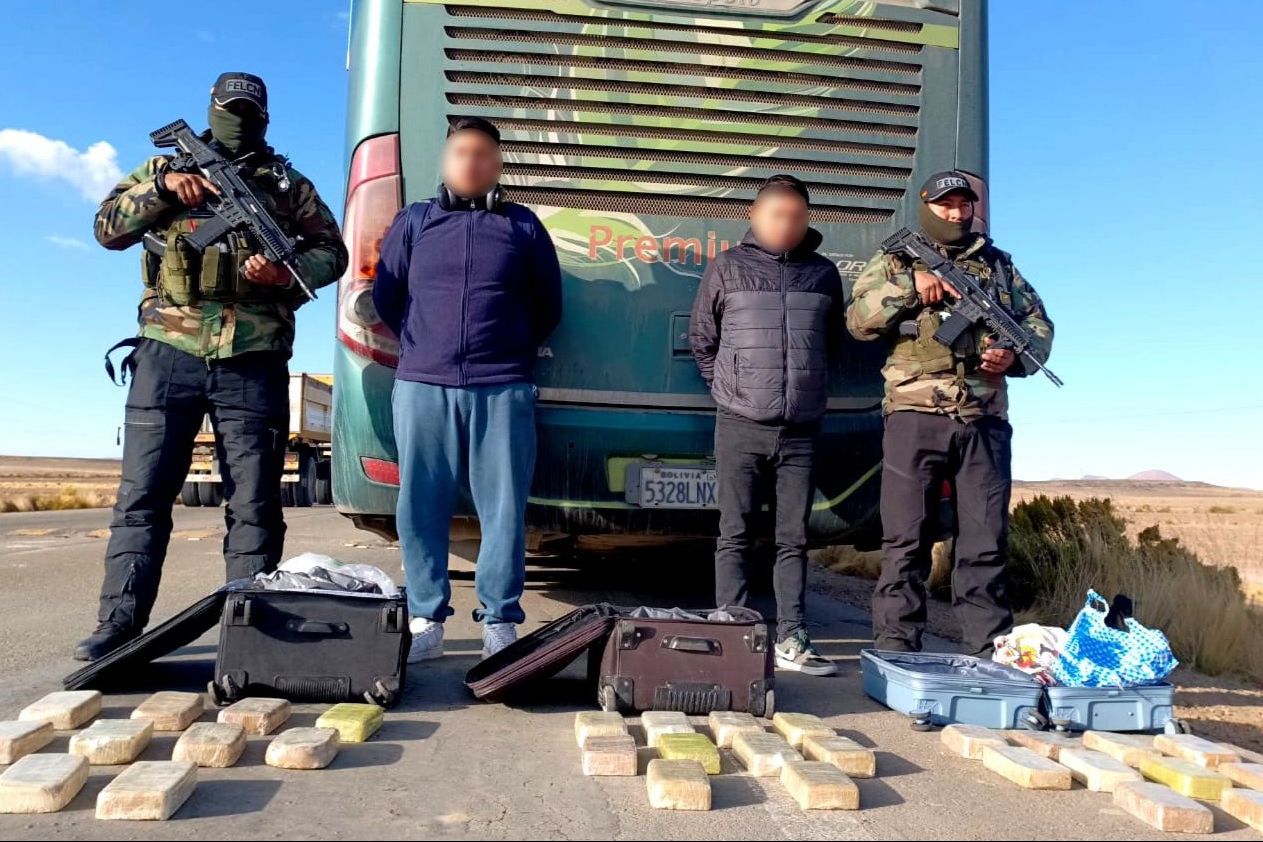 Unos 30 paquetes de pasta base de cocaína droga fueron encontrados por personal antidroga dentro de un bus de transporte…